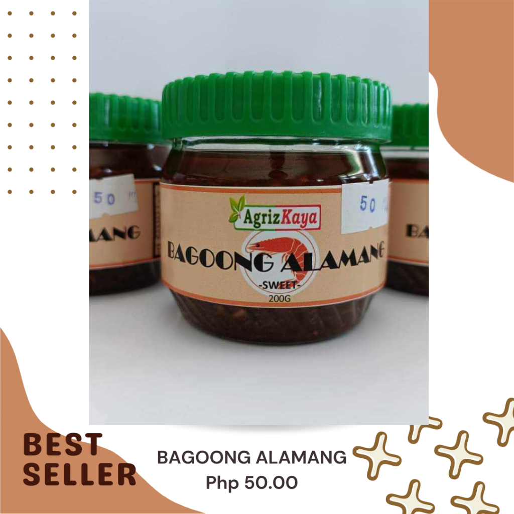 FRESHLY BAKED SQUARROT COOKIESPHP100.00 Premium Bagoong Alamang-Classic Guisado-Sweet & Spicy (BEST SELLER)-Pork LiempoPHP150.00 ONLY Apple cider vinegar 500MLPHP150.00 PICKLED TAMARIND 450MLPHP100.00 Tasty kangkong Chips 50 gramsPHP 80.00 AGRIZKAYA MUSCOVADO 400GPHP100.00 KangKong Chips & SPINACH CHIPS (120grams)PHP 130.00 BALIKUTSA 225GRAMS MUSCUVADO SUGAR 450GRAMS